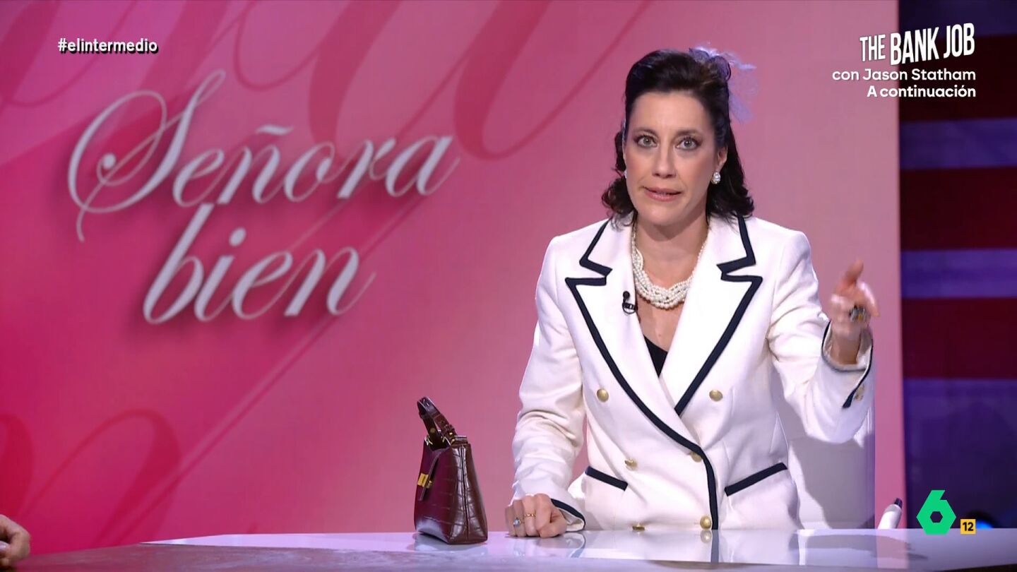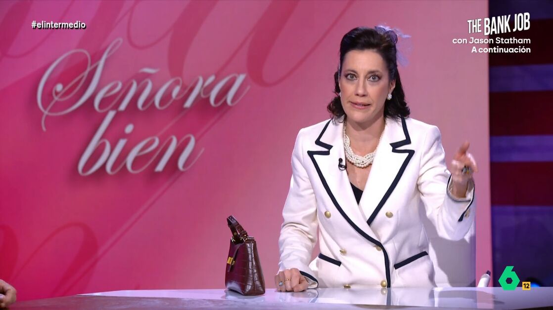 La 'señora bien' llega al plató de 'El Intermedio', un día más criticando a Pedro Sánchez: "El okupa de Moncloa haciéndose el chulito con Estados Unidos", afirma 'Piluchi', que avisa que "esta gente no se anda con chiquitas y nos van a quitar Ceuta, Melilla y Canarias".