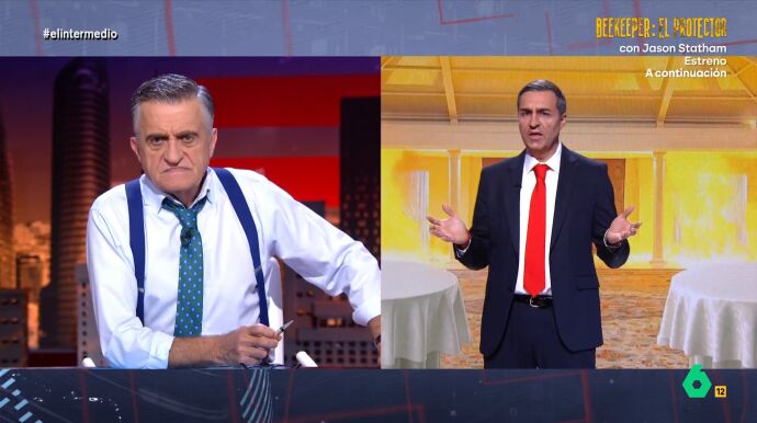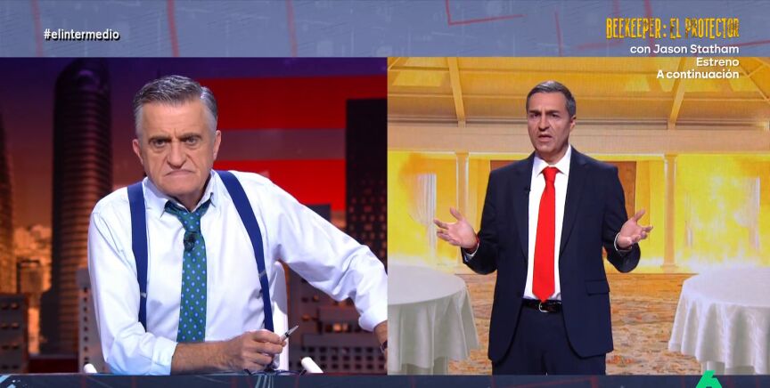 Tras su tradicional copa navideña con la prensa, Wyoming contacta con el propio 'Sánchez' para echarle en cara que no le haya invitado y mostrarle su enfado. "Ponte a la cola, que antes van todos los socios del Gobierno", le responde el 'presidente', imitado por Raúl Pérez.