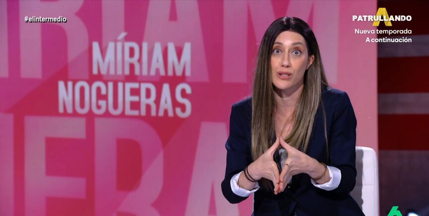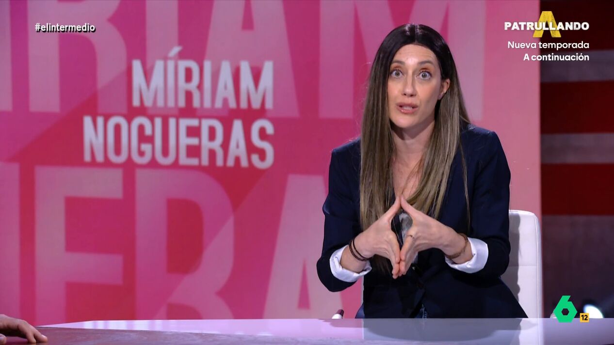 'Míriam Nogueras' visita el plató de El Intermedio para explicar los motivos del 'no' de Junts al decreto ómnibus del Gobierno que incluía la subida de las pensiones.