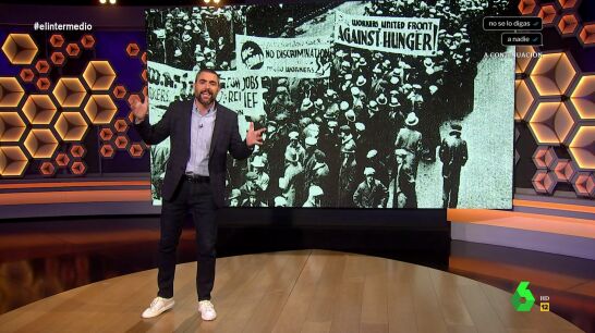 En el vídeo sobre estas líneas, el colaborador de El Intermedio se remonta más atrás en el tiempo para demostrar que "a la menor ocasión, la izquierda se apuñala llamándose disidente". Es el caso de los dos líderes del PSOE durante la II República, Indalecio Prieto y Francisco Largo Caballero, cuyas diferencias terminaron decidiéndose "a botellazos, pedradas y hasta balazos": "Lo de Podemos y Sumar no es para tanto, ellos como mucho se tiran a la cabeza tuits, que eso ni duele", apunta.