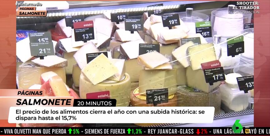 En contrapartida, el precio de los alimentos "sigue disparado". De hecho, y según el INE, "el precio de la cesta de la compra ha cerrado el año con una subida histórica del 15,7%". Por ello, Podemos ha propuesto topar el precio de los alimentos básicos y fijar el precio que tenían antes de la Guerra de Ucrania, una solución que no comparten ni Yolanda Díaz, ni la parte socialista del Gobierno: "Si el Gobierno de coalición quiere tener un año tranquilo, yo al menos toparía los roces entre socios", reacciona El Gran Wyoming.