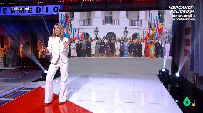De esta manera, 'la primera dama de Andorra' cuenta que Melania, la súper anfitriona y mujer del líder republicano, unió a todas las asistentes para hacer una foto grupal, donde estaba la de Panamá, la de Emiratos Árabes, Brigitte Macron, la princesa de Marruecos o la mujer de Zelenski.