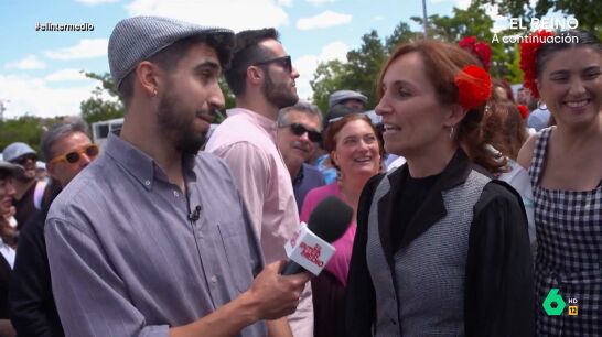 Por otro lado, el reportero de El Intermedio se encuentra a Mónica García vestida de chulapa, que le explica cómo ser buena madrileño. "Arrastrar un poco la j...". "En el Barrio de Salamanca no escucho muchas j"; afirma el reportero entre risas. Además, la ministra de Sanidad destaca que también hay que ser un poco chulesca y responde tajante cuando Isma Juárez le pregunta si se puede ser madrileño y de izquierdas: "Se puede y se debe".