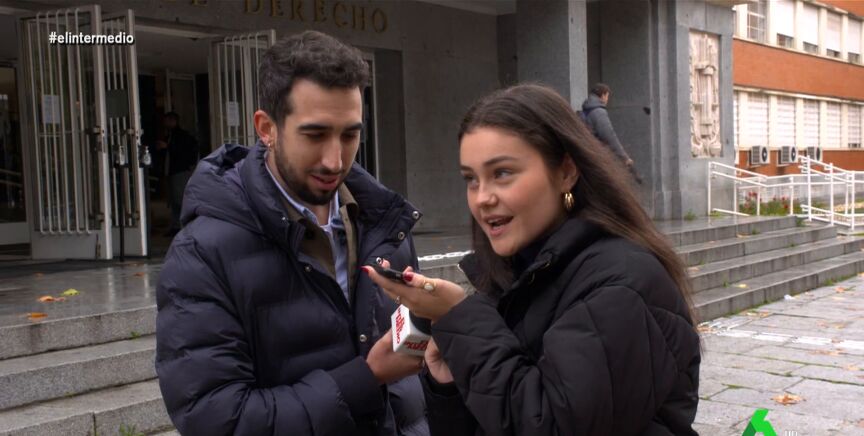 Isma Juárez preguntaba a los universitarios si están contentos con sus carreras. En el caso de esta estudiante de Derecho, reconocía que siempre quiso ser actriz y, con la ayuda del reportero de El Intermedio, gastaba una broma a su madre.