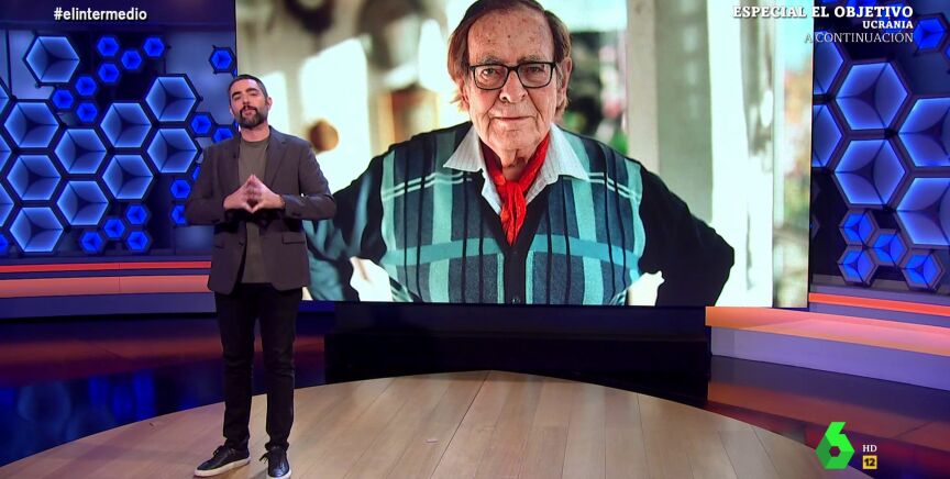 "Mucho cachondeo, pero ojo con la moción de censura liderada por Tamames", espeta Dani Mateo nada más entrar en el plató de El Intermedio, donde resalta las cualidades del comunista y explica por qué sería un buen líder para gobernar España: "No es el candidato más joven, ni el más guapo, tampoco el más simpático ni el que tiene la carrera más larga por delante, pero sin duda es el más preparado".