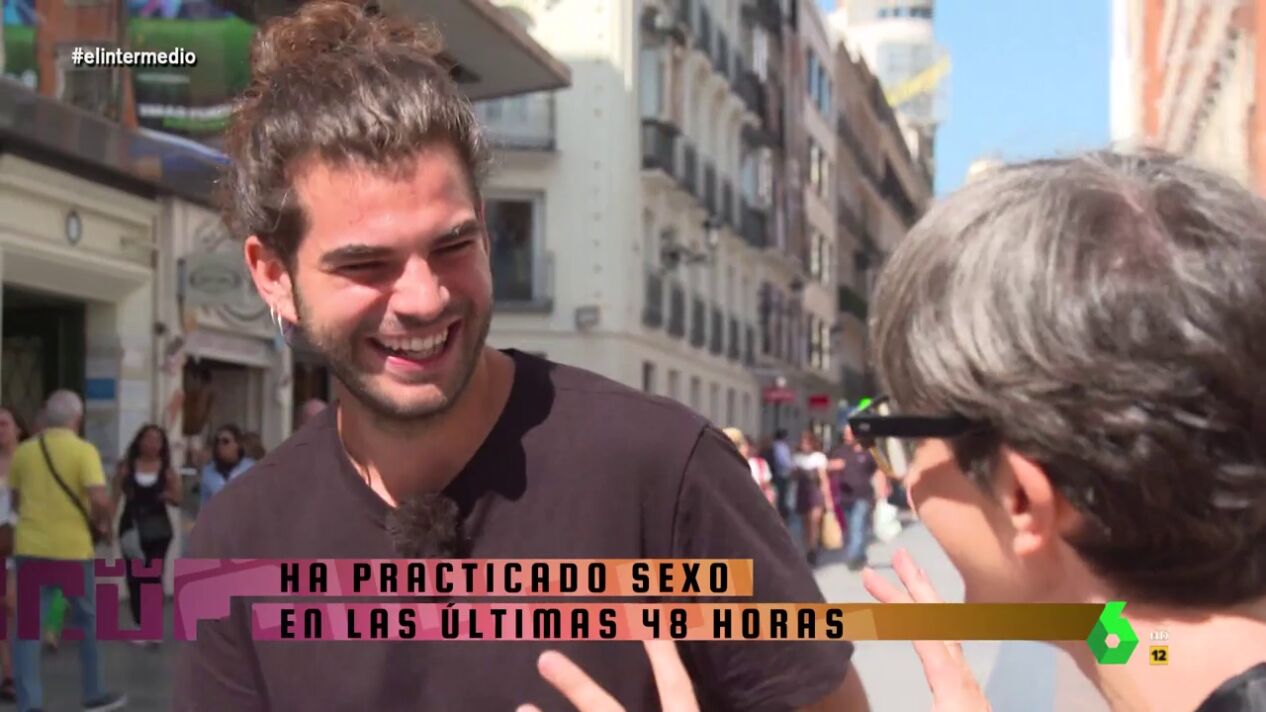 "Te voy a pedir que me busques a alguien que haya tenido sexo en las últimas 48 horas", pide Thais Villas al joven, al que también pregunta cuándo fue la última vez que él mantuvo relaciones sexuales. Puedes ver la divertida reacción del chico y si consigue lograr el reto en el vídeo principal de esta noticia.