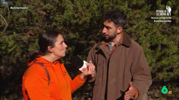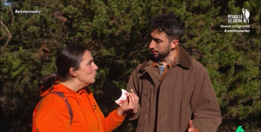 Equipado con una cesta y un considerable cuchillo, Isma 'asusta' a uno de los miembros de la asociación: "Madre de Dios, ¿vienes a cortar setas o piernas?", le comenta en el vídeo sobre estas líneas.
