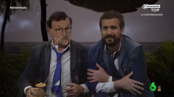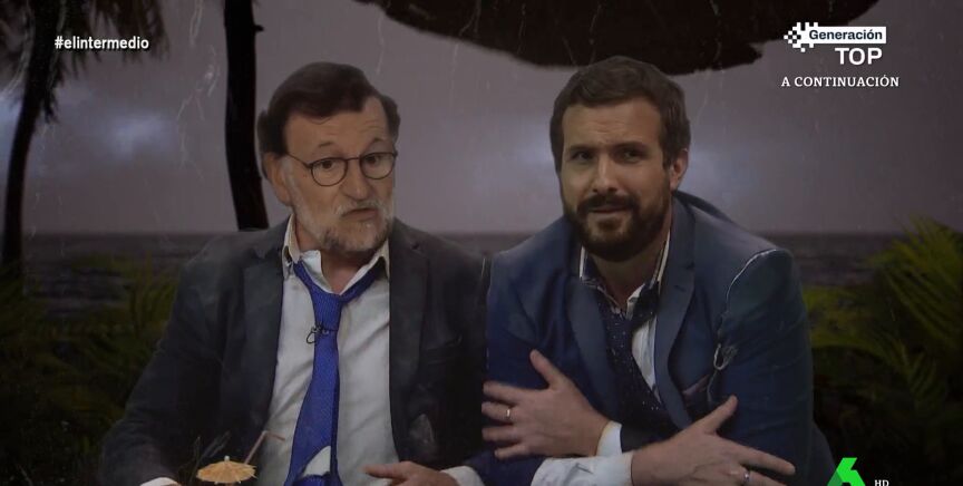 'Pablo Casado' expresa su alegría al encontrarse a 'Mariano Rajoy' en 'la isla de los perdidos' y le pide ayuda, pues asegura que está "perdiendo la cabeza". "Yo que estaba destinado a convertir España en Silicon Valley", se lamenta, pero el 'expresidente' del Gobierno intenta animarle: "Siempre puedes convertir esto en Silicon Beach".
