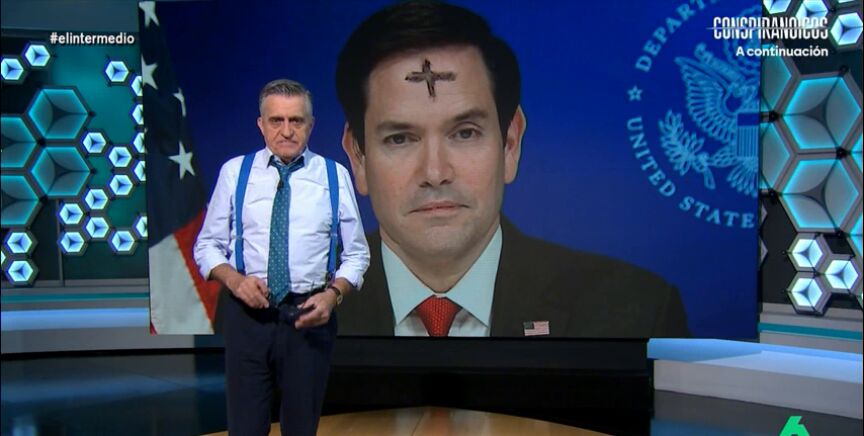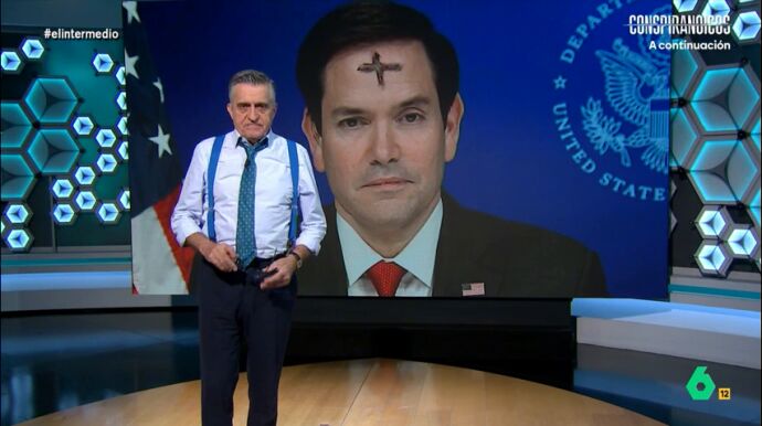Wyoming arranca El Intermedio con imágenes que se resumen en una sola palabra. Una de ellas es la del secretario de Estado de Estados Unidos, Marco Rubio, que aparecía en una entrevista con una cruz pintada en la frente.