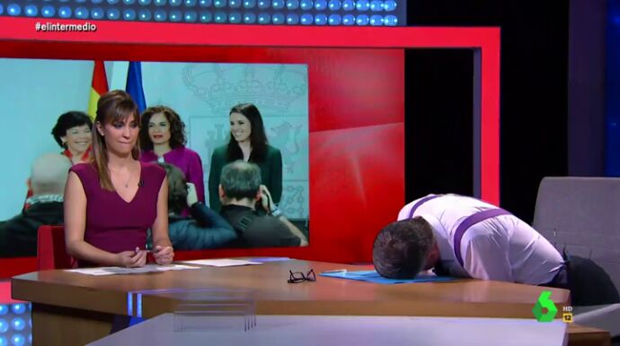 Por su parte, Sandra Sabatés se desplaza hasta el pico de la mesa de El Intermedio para realizar un alegato a favor de la lucha feminista: "El lema 'sola y borracha' solo reivindica que las mujeres queremos andar por la calle sin correr el riesgo de ser agredidas sexualmente".