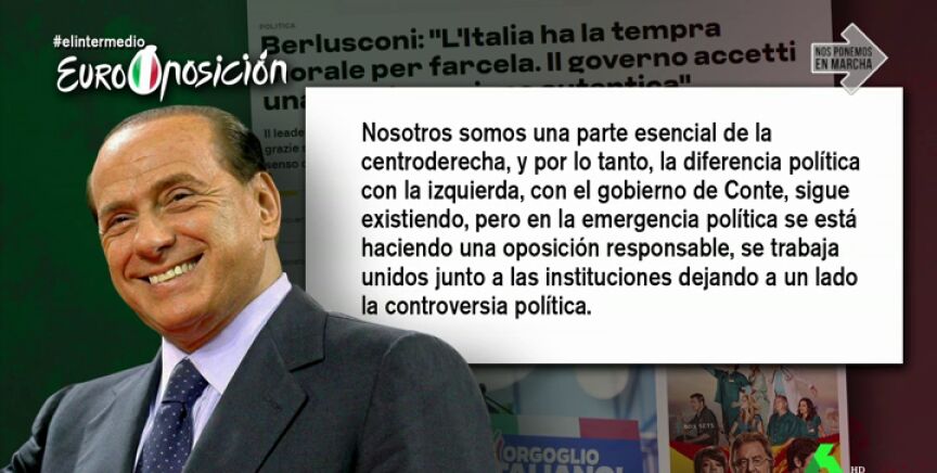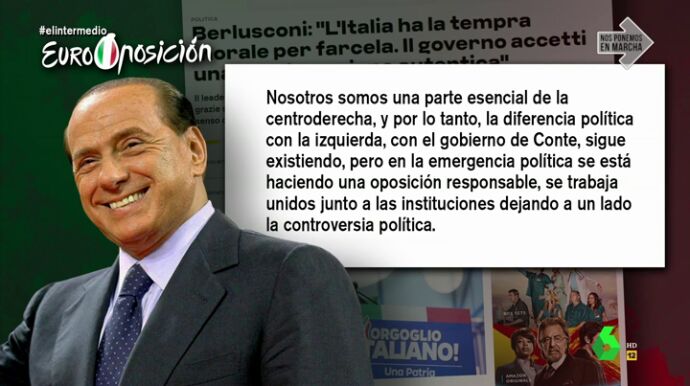 "Salta la sorpresa. Silvio Berlusconi, el antiguo amante de la polémica dando un ejemplo de responsabilidad institucional. ¿Quién nos iba a decir que hasta Berlusconi sería más responsable que la oposición española?", se ha preguntado El Gran Wyoming.
