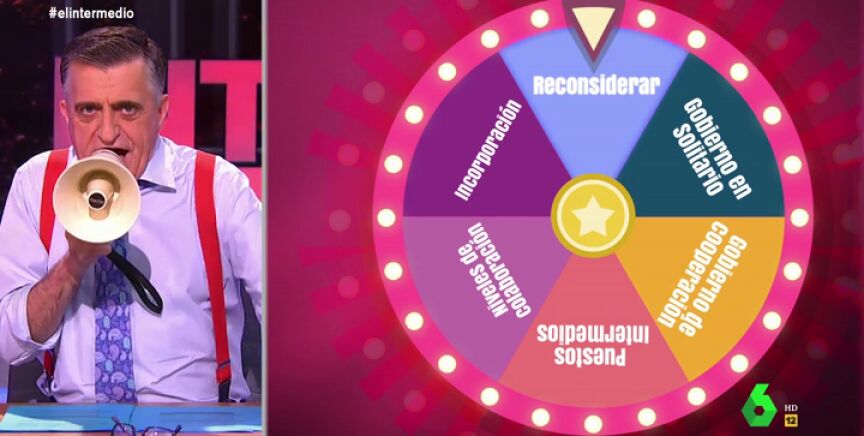 El Gran Wyoming se convierte en El Intermedio en el pregonero de "la tómbola de la investidura, que ya veremos cuanto dura", una ruleta que "siempre tiene premio": el Gobierno.