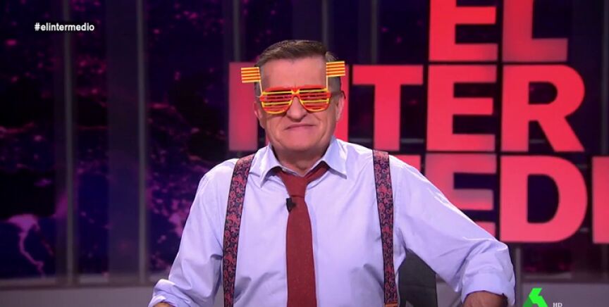 El Gran Wyoiming se ha puesto las gafas catalanas para leer los presupuestos: "Son molt macos". Las gafas, con su increíble poder, han hecho que a Wyoming le entrasen ganas de subirse encima de Dani Mateo y "hacer un castell para declarar la independencia".