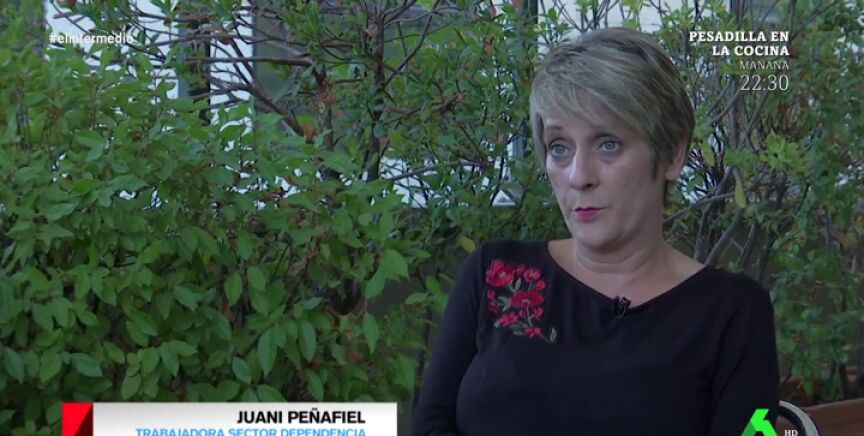 El Intermedio recibe a Juani Peñafiel, una trabajadora que gana 700 euros al mes, y si no fuera por la ayuda de su pareja, no podría vivir: "No se puede ahorrar, no se puede ir a un banco a pedir una hipoteca, no tienes independencia".