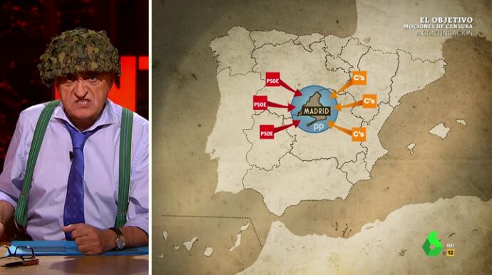 "Las hordas socialcomunistas liberales se han alzado en armas y pretenden asolar España". destaca un alucinado El Gran Wyoming al analizar en este vídeo de El Intermedio "los frentes políticos abiertos" que tiene España.