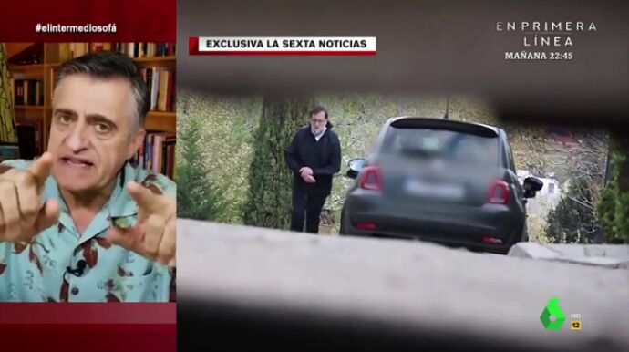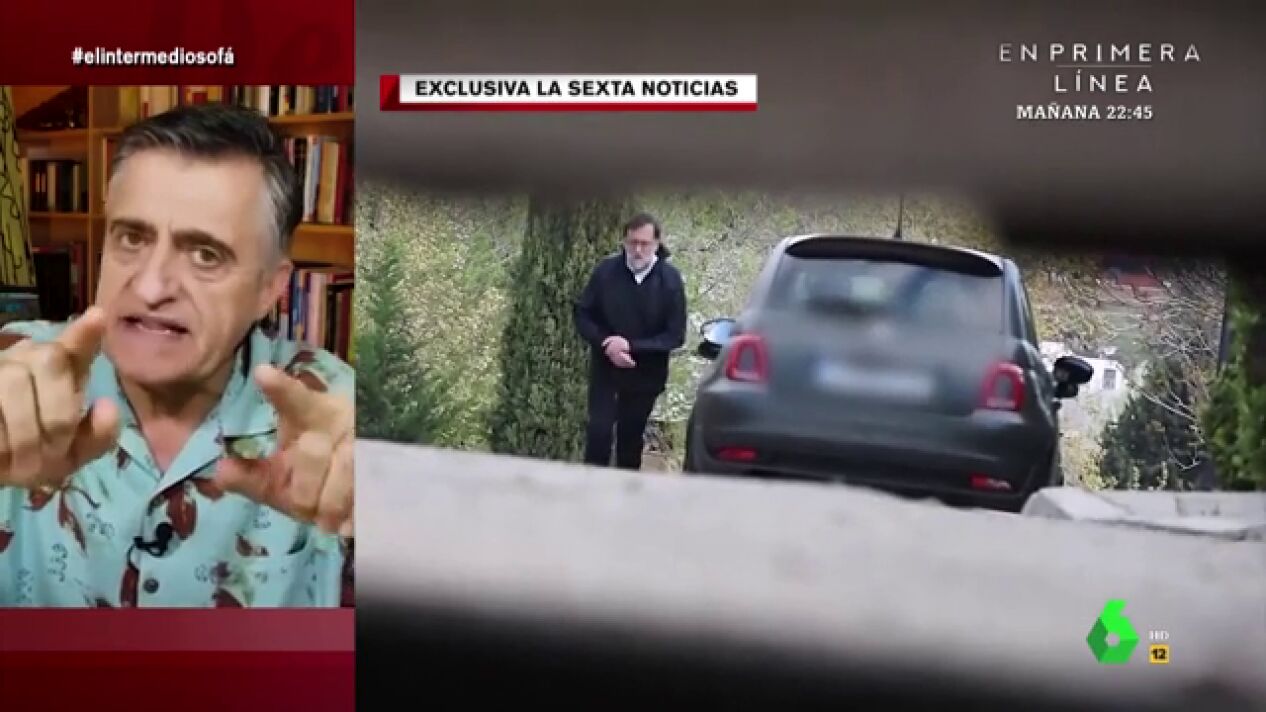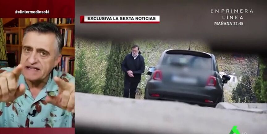 "Como han comprobado las cámaras de laSexta, Mariano Rajoy se ha saltado el confinamiento", explica Sandra Sabatés a El Gran Wyoming. Para muestra, la presentadora enseña en El Intermedio el vídeo en el que se puede ver cómo el expresidente sale a la calle con zapatillas de deporte, pantalones de chándal y un chubasquero.