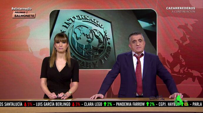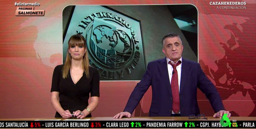 El Gran Wyoming analiza las últimas previsiones del Fondo Monetario Internacional en este vídeo de El Intermedio, donde repasa la actualidad económica junto a Sandra Sabatés y Dani Mateo.