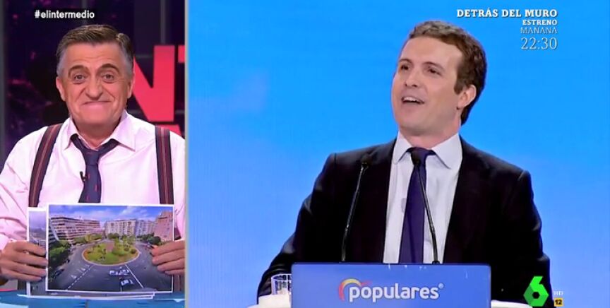 El Gran Wyoming se sorprende con los conocimientos de geografía que Pablo Casadomostró en la Convención Nacional del PP, en la que apeló aSilicon Valley y a numerosas plazas españolas.