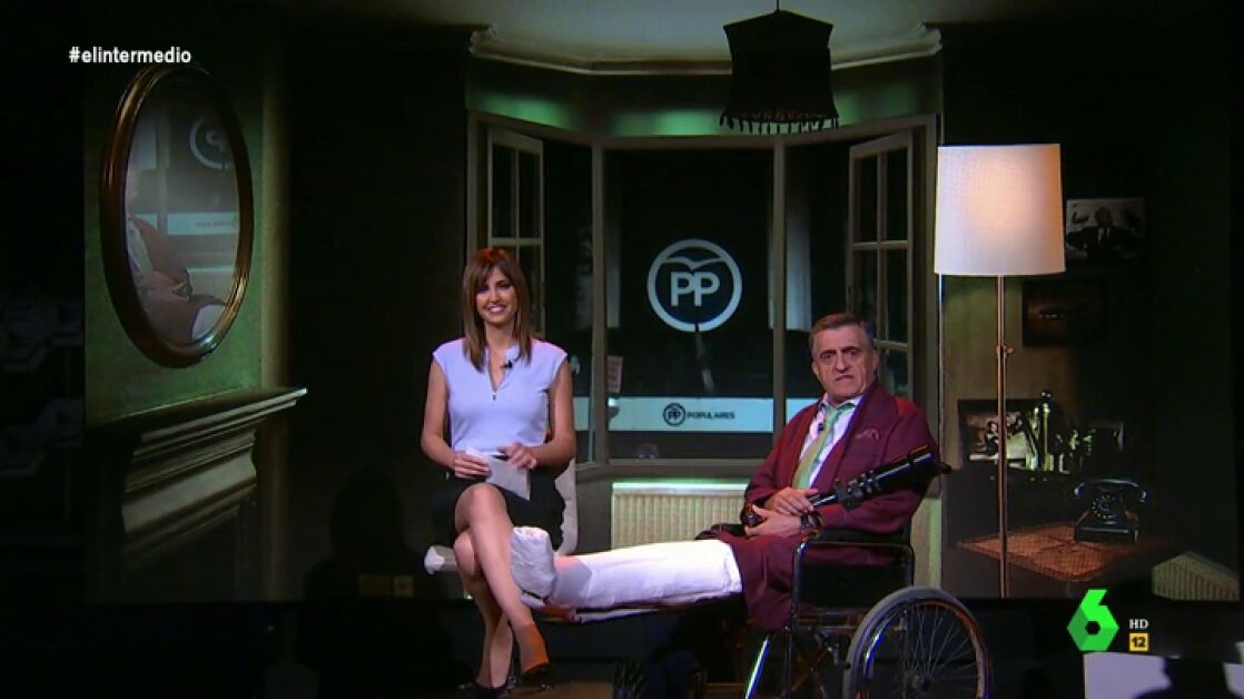El Gran Wyoming espía en El Intermedio"la financiación indiscreta" de sus vecinos de la calle Génova 13. "¿Qué ha sido de Paco, el de Valencia?, he oído que está a punto de cambiar el Ferrari por un furgón policial", comenta el presentador.