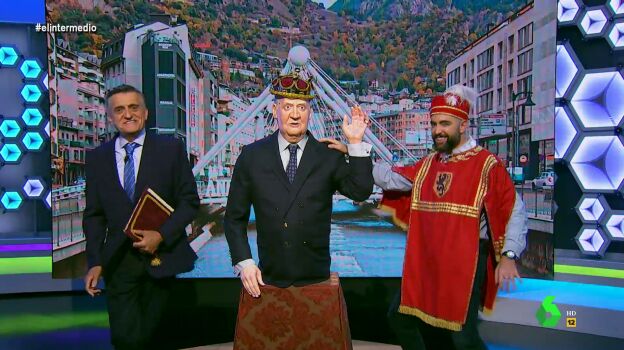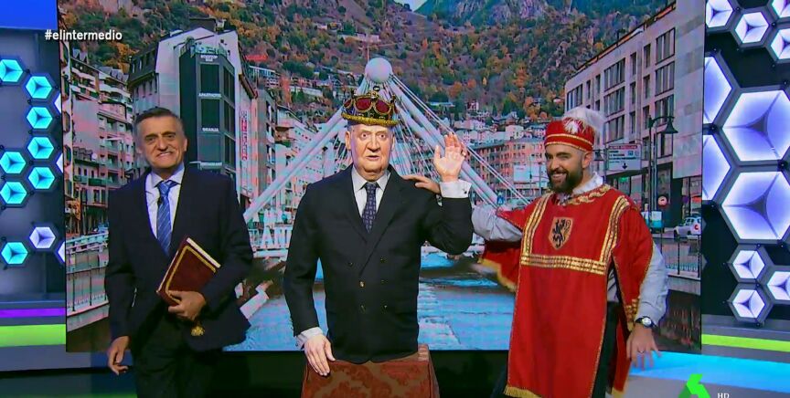 "¡Viva el rey! ¡Viva Andorra!", han celebrado los presentadores de El Intermedio al coronar al monarca en pleno plató tras el último escandalo destapado por la Fiscalía suiza.
