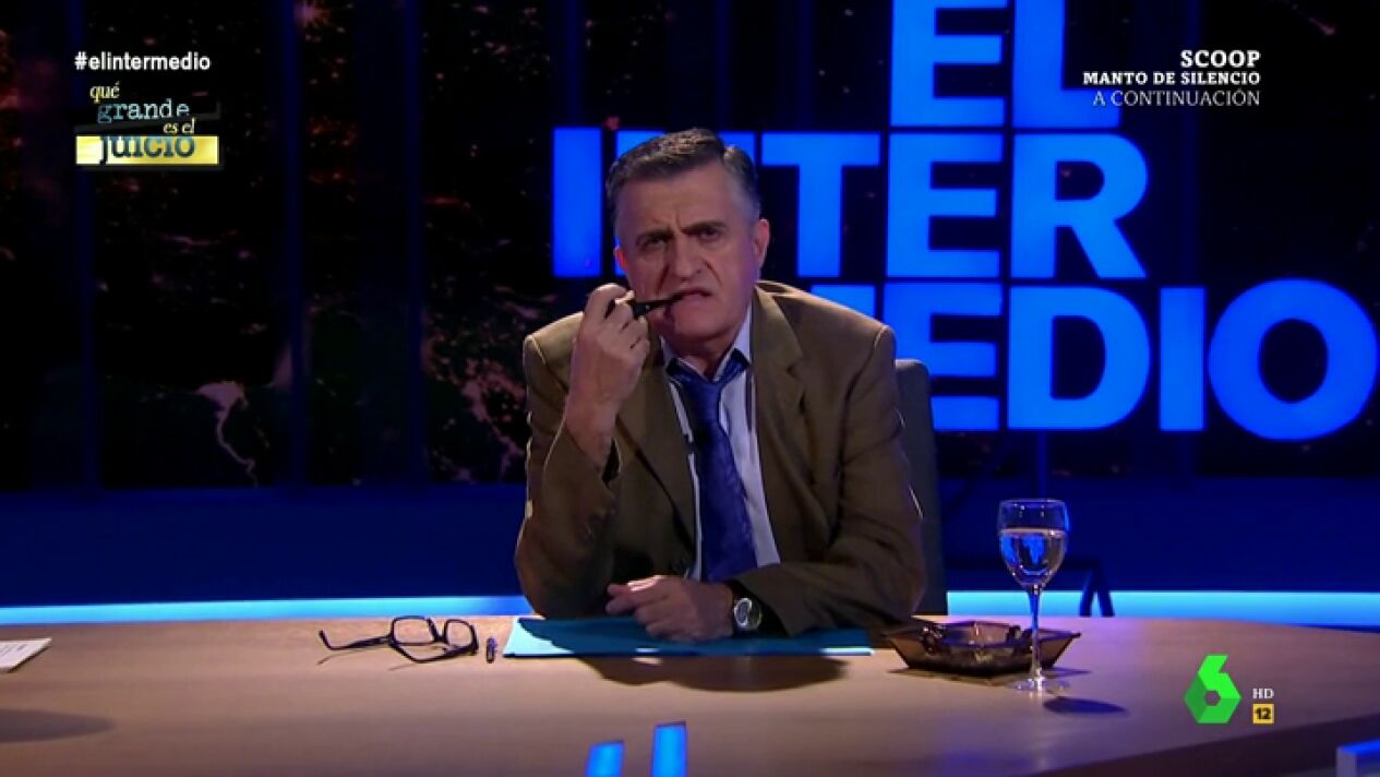 El Gran Wyoming hace un resumen de la fase de los acusados durante el juicio del 'procés', y lo hace al estilo de uno de sus grandes "inspiradores", José Luis Garci, conductor de 'Qué grande es el cine'. Llega, 'Qué grande es el juicio', "un espacio para los amantes de los grandes clásicos de la justicia", adelanta Wyoming.