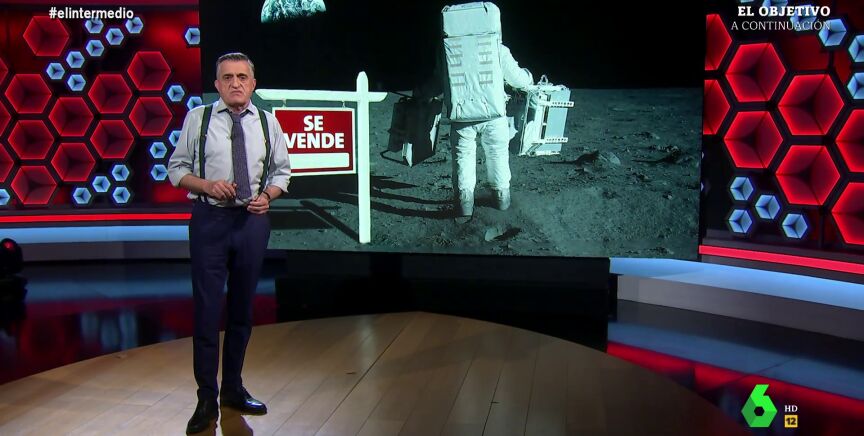 Esta idea, que Wyoming confirma que proviene de la institución británica y no de "Ayuso después de una maratón de Star Wars", pretende además poner remedio al problema de la basura espacial. La propuesta, que consiste en que cada país tenga una parcela del satélite y la alquile a magnates y empresas, es para el presentador de El Intermedio "un pequeño paso para el hombre, pero un gran salto para las inmobiliarias". El resto del análisis, y de otras medidas en la Luna como la impulsada por Trump cuando estaba en la Casa Blanca, en el vídeo sobre estas líneas.