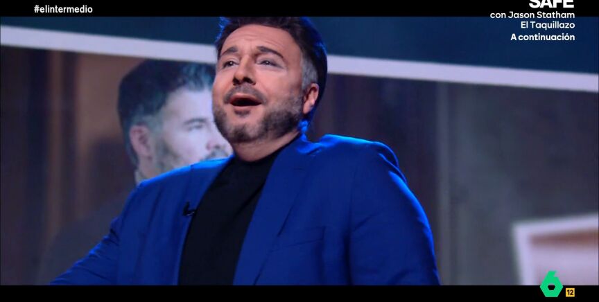 "Esto es la izquierda", le dice 'Rufián' al presentador. "¿Cuánto pesa la izquierda?", pregunta. "No sé", responde Wyoming, "si me incluye a mí unos cinco o seis kilos más que me he metido esta Navidad...". "Efectivamente, por eso, si aguantamos a la izquierda durante un día entero te da sed", indica el 'político'.