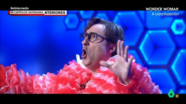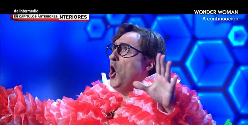 El humorista se atrevió incluso a ponerse el llamativo estilismo de Nemo, compuesto por una falda blanca y una chaqueta en tono rosa pero sin olvidar uno de los accesorios más característico de Illa: sus gafas de pasta.