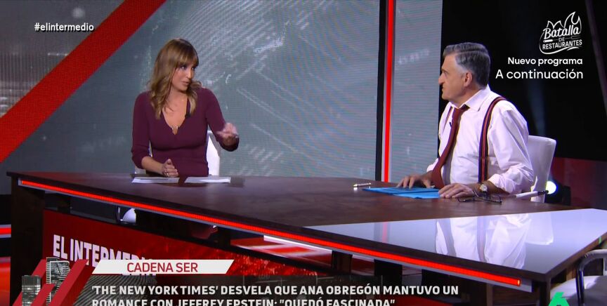 El Gran Wyoming da en el plató de El Intermedio una noticia que "nunca" pensó que daría. "Siempre me preguntaron que qué me gustaría dar, pues esta es la noticia", afirma El Gran Wyoming, que suelta la 'bomba': "¡Ana Obregón tuvo un romance con Jeffrey Epstein!". Tras conocer la noticia, Sandra Sabatés da la "enhorabuena" a Alessandro Lequio: "Ya solo es el segundo peor novio de la Obregón".