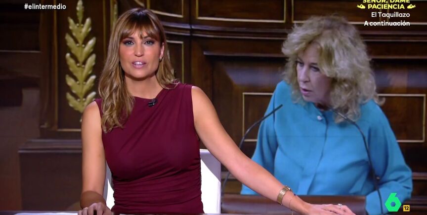 Sandra Sabatés ha mostrado en este vídeo de El Intermedio el "momento especialmente grave y ofensivo" que se vivió en la sesión de control en el Congreso de los Diputados "cuando la diputada de Vox Rocío Aguirre, cargaba contra el Ministerio de Igualdad. "Les importa nada las mujeres", ha asegurado la hermana de Esperanza Aguirre, que ha afirmado a la ministra de Igualdad que "no ha dicho nada de las mujeres violadas por los terroristas de Hamás".
