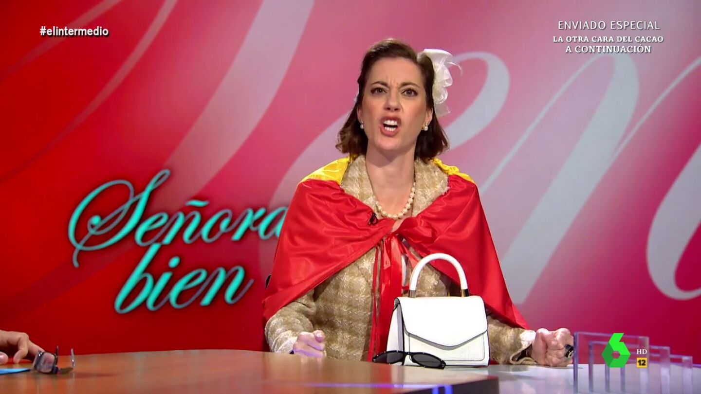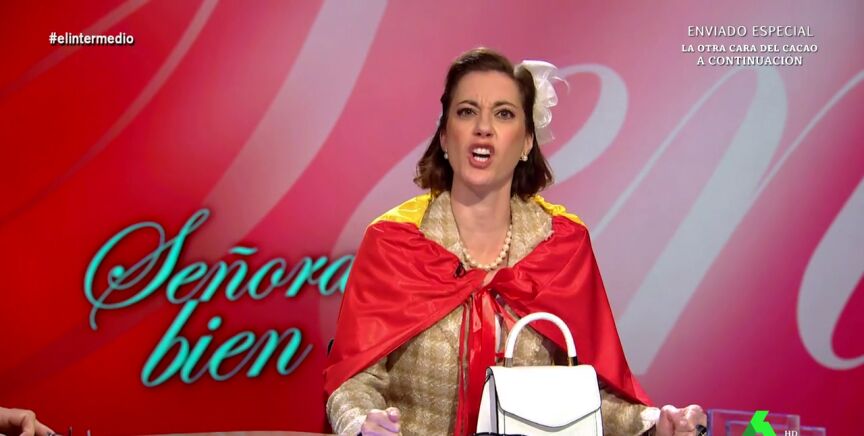 Cristina Gallego imita en El Intermedio a 'Piluchi, la señora bien'. La cómica se pone en la piel de esta señora de derechas que, como cuenta, no ha faltado ni un día las concentraciones que se han celebrado en Ferraz.