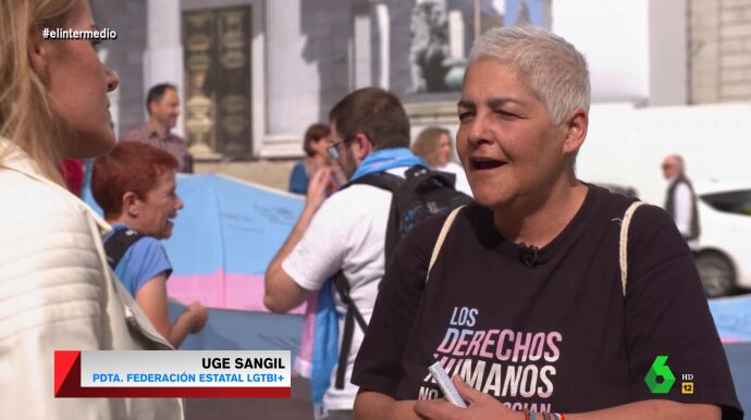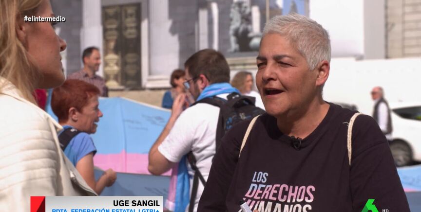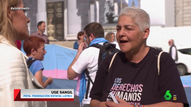 Elcolectivo trans ha protagonizado varias manifestaciones, una de ellas, a las puertas del Congreso de los Diputados, por el retraso de la ley trans. Allí, Andrea Ropero entrevistó con la conocida activista y presidenta de Federación Estatal LGTBI+, Uge Sangil, quien destacó que "hay un sector instalado en el odio que, por mucha pedagogía que se haga con ellos, no quieren entendernos ni nos van a escuchar".