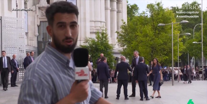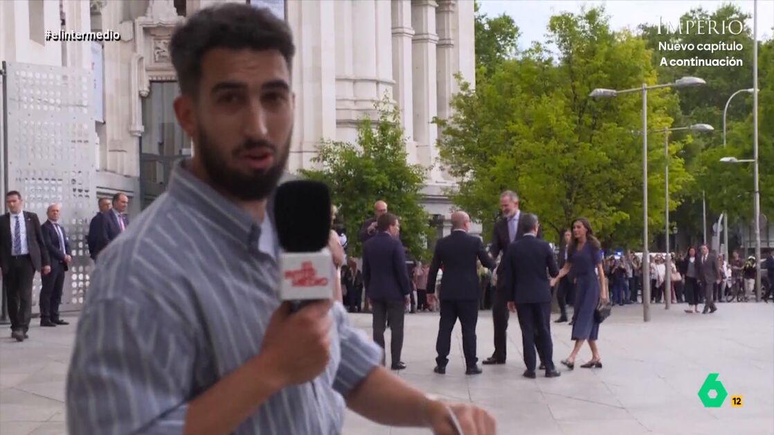 El reportero de El Intermedio conseguía que Miguel Ángel Aguilar le colara en el acto con los monarcas: "Vamos a hablar con quien haga falta", comentaba el periodista, mientras Isma veía cómo a los pocos segundos los de seguridad le invitaban a salir.