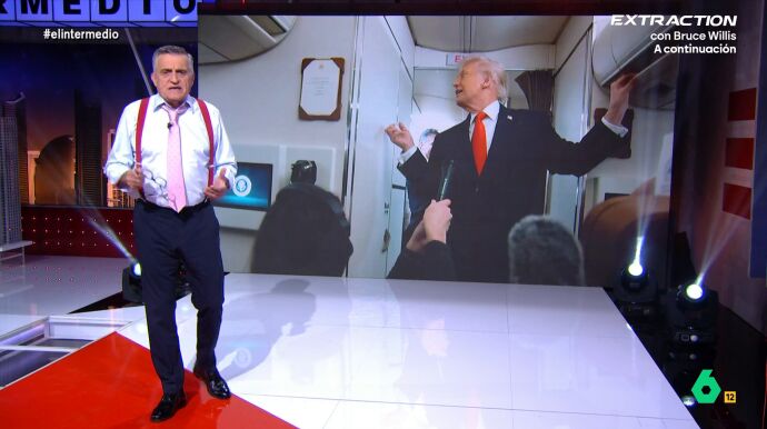 La única condición que no cumple Estados Unidos, según el presentador, es que su líder no tiene bigote, "principal rasgo de los dictadores". Por ello, ironiza con que todavía "podemos seguir engañándonos y decir que Estados Unidos es la mayor democracia del mundo".