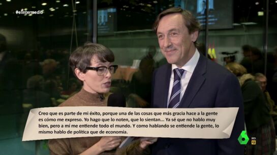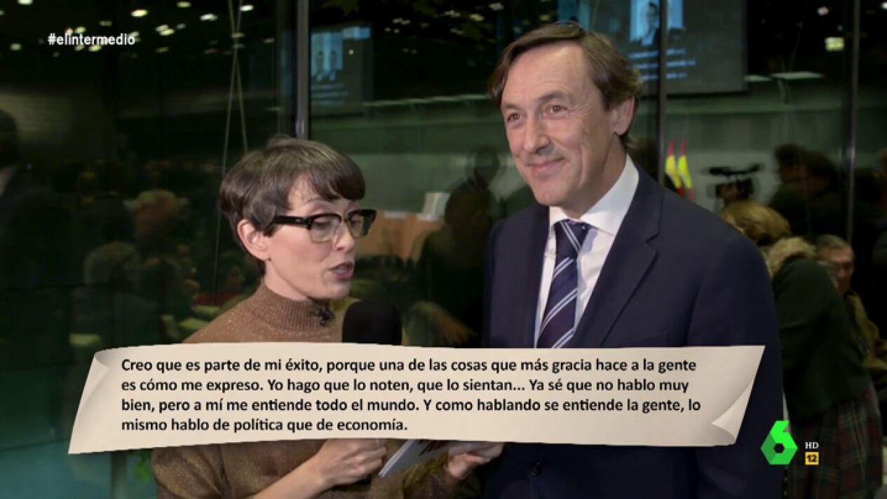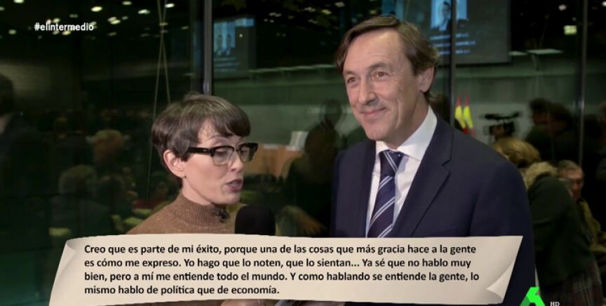 "Ya sé que no hablo muy bien, pero a mí me entiende todo el mundo. Y como hablando se entiende la gente, lo mismo hablo de política que de economía": es parte del fragmento que la colaboradora de El Intermedio leyó a Maroto y Hernando, que reconocían a Rajoy en esas letras.
