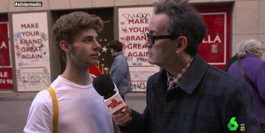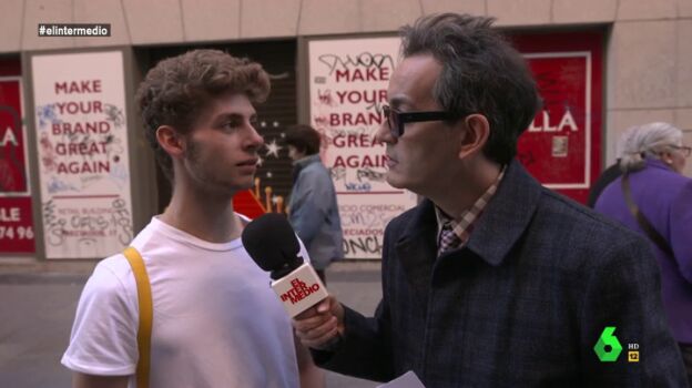 Entonces, el colaborador de El Intermedio intenta darle una pista para que averigüe quiénes son los Jordis, "uno es Jordi Sanchez y ¿el otro?", a lo que el joven contesta: "Jordi Cruz".