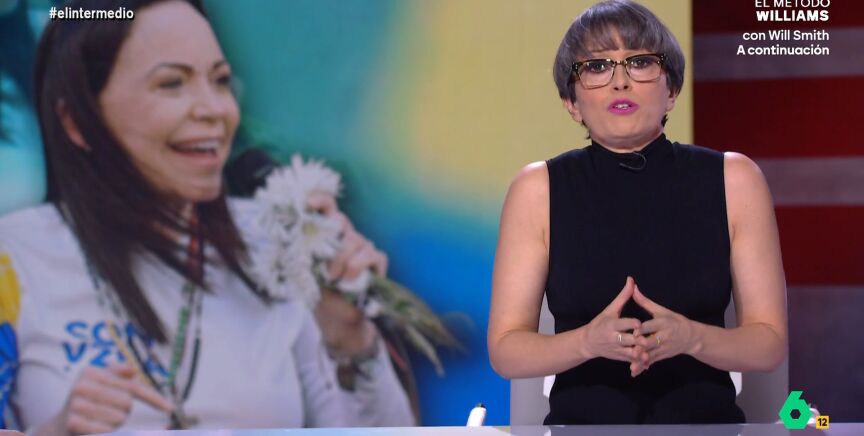 La periodista ha analizado el ofrecimiento de la opositora venezolana y Premio Nobel de la Paz, María Corina Machado, quien se ha ofrecido a compartir el galardón con el presidente de EEUU.