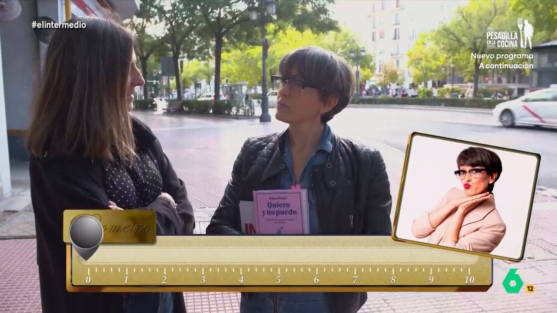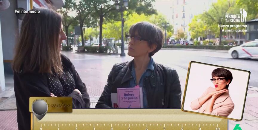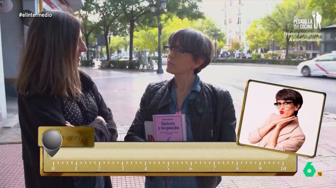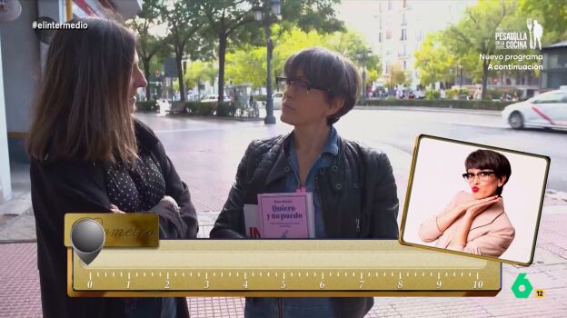 La reportera también se anima a someterse al 'pijómetro' de Raquel. La escritora pregunta si tiene patrimonio. "Te veo muy 'gauche divine'", afirma Peláez, "quizá estés como Pedro Sánchez, un seis". Villas confiesa que ella siempre habría querido ser pija pero "he sido siempre muy hortera... sería 'piji loca'".