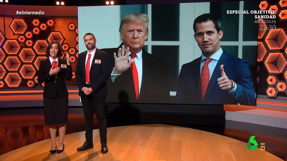 Dani Mateo y Cristina Gallego hacen un recorrido por el museo Arqueológico de Noticias de Juan Guaidó, el que fuera presidente interino de Venezuela, y recuerdan qué presidentes reconocieron su gobierno.