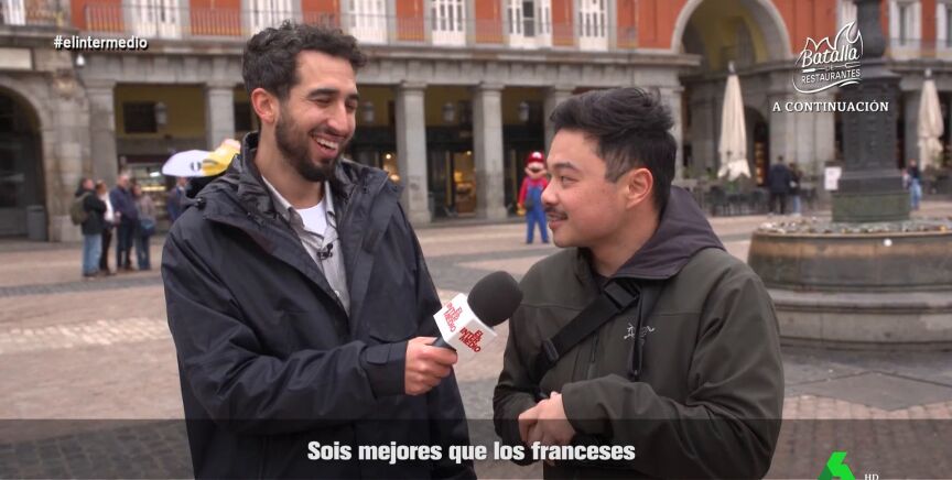 El reportero charla también con unos turistas portugueses. Consideran que los españoles son "alegres, divertidos" aunque añaden que "hablamos alto". Isma les pregunta si les gustaría tener un amigo español, pero estos responden con una negativa. "Estamos muy bien, pero con una frontera, la verdad es que sí", concluye el reportero.