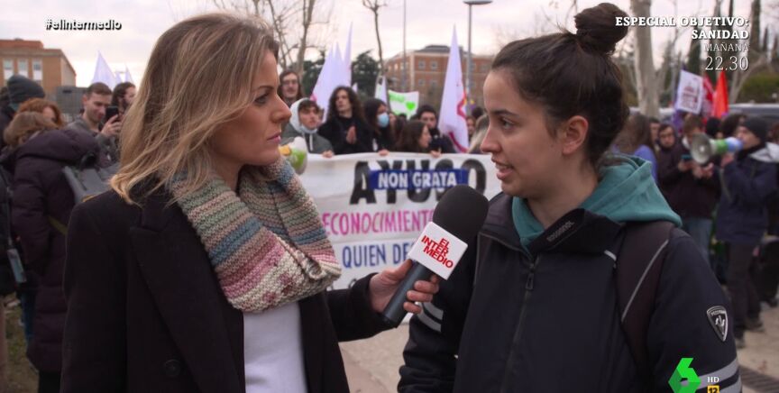 "Ayuso no se ha hecho nada por la universidad pública, se ha encargado de desmantelar la educación", ha criticado duramente Blanca, una de las universitarias entrevistadas por Andrea Ropero. Por su parte, la profesora Eva Aladro relata la indignante situación que se ha vivido con los universitarios: "Los alumnos estaban arrinconados mientras otros jovencitos de no sé qué partido entraban". "La señora Ayuso no reúne las condiciones para ser ilustre", ha afirmado rotunda la profesora de la Complutense. Por otro lado, una de las jóvenes que sí ha podido entrar al acto lo ha hecho gracias a un invitación de la Comunidad de Madrid y no por ser estudiante de la Facultad. Puedes ver el reportaje en el vídeo de arriba.