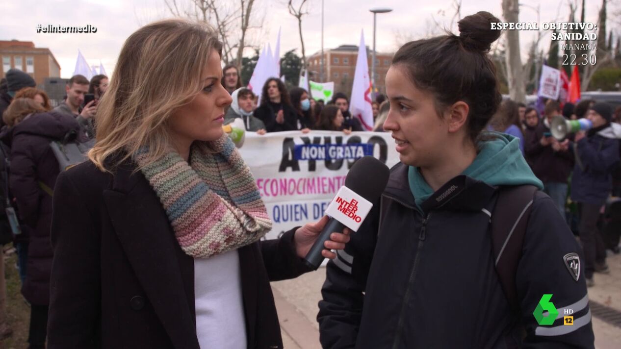 "Ayuso no se ha hecho nada por la universidad pública, se ha encargado de desmantelar la educación", afirma una estudiante de la Universidad Complutense, centro que ha nombrado a Ayuso alumna ilustre.
