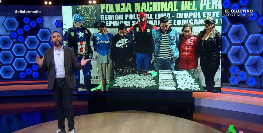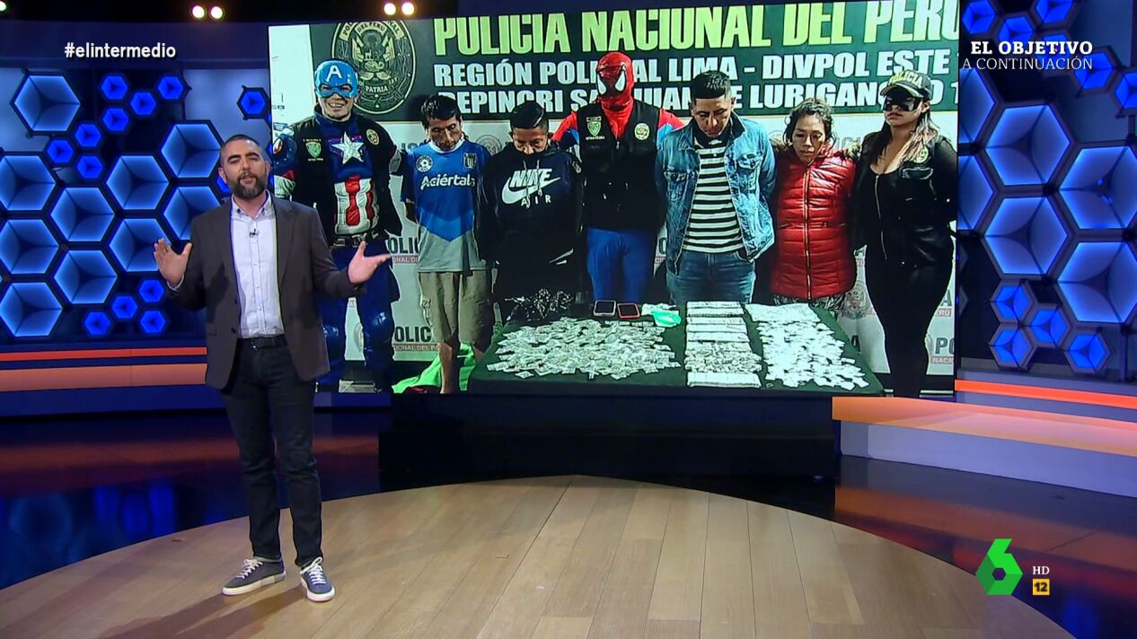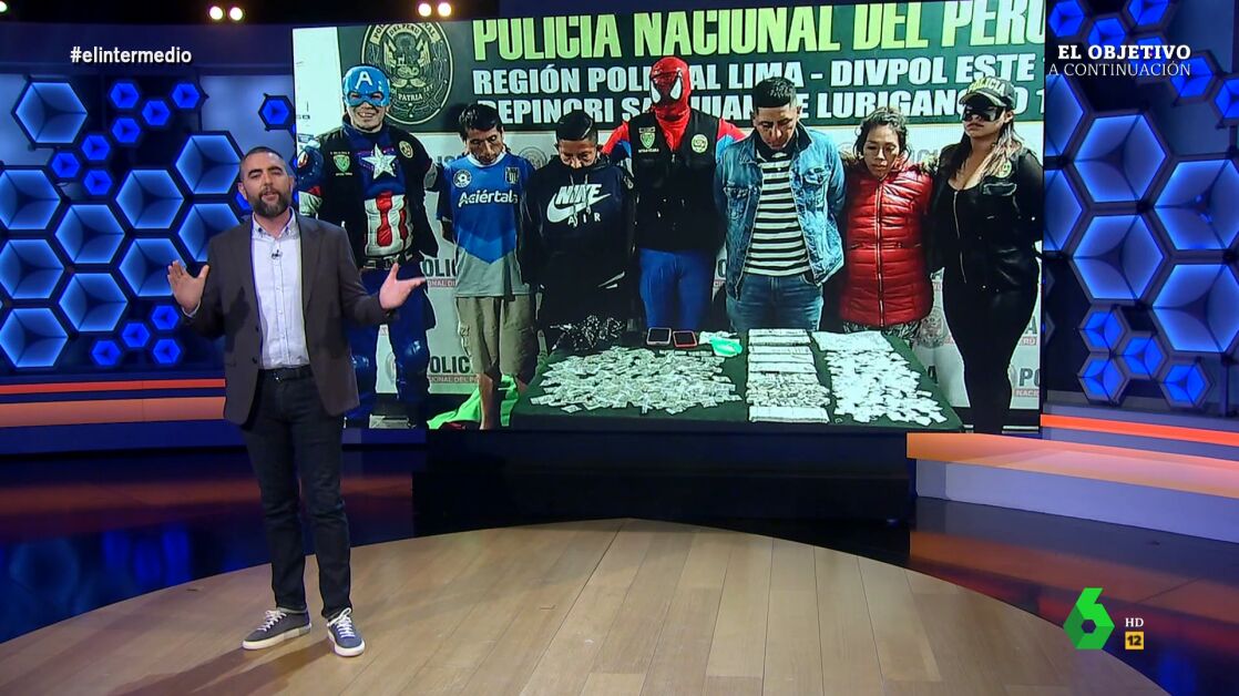"En Perú no solo se disfrazan de superhéroes, encima ejercen de superhéroes", comenta Dani Mateo, que analiza la redada protagonizada por el 'Escuadrón Verde', un grupo especial de la Policía de Lima que aprovechó el día de Halloween para disfrazarse de 'Los Vengadores' y detener a un grupo de narcotraficantes.