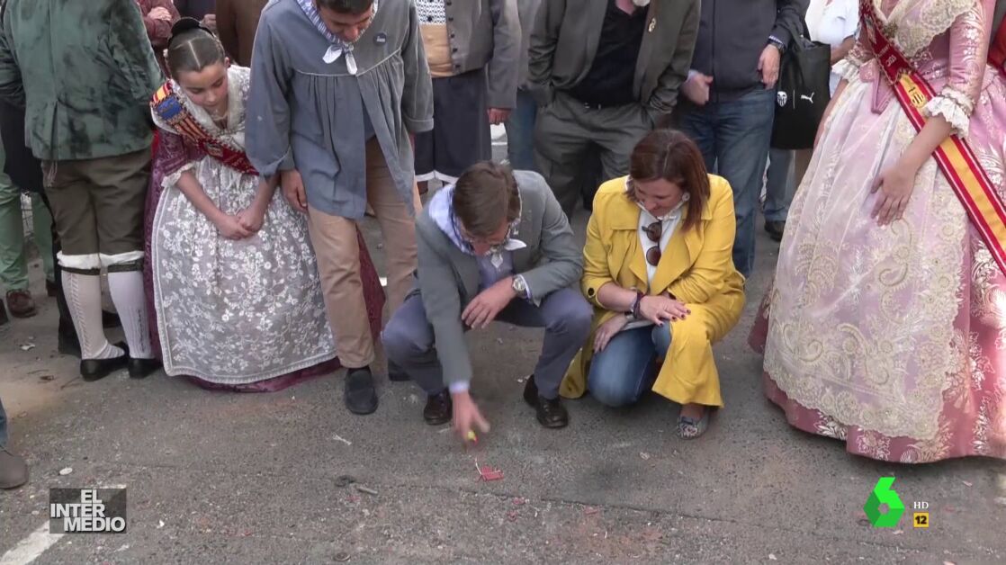 En este montaje de El Intermedio, el alcalde de Madrid, José Luis Martínez-Almeida, demuestra sus dotes como maestro pirotécnico encendiendo la mecha de un petardo, causando una explosión nuclear en plenas Fallas de Valencia.