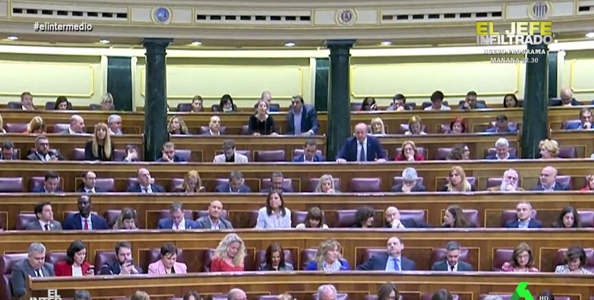 En este montaje de El Intermedio, varios diputados del Congreso llevan a cabo una original coreografía, perfectamente ejecutada, para emitir su voto a ritmo de la canción 'Rehab' de Amy Winehouse.