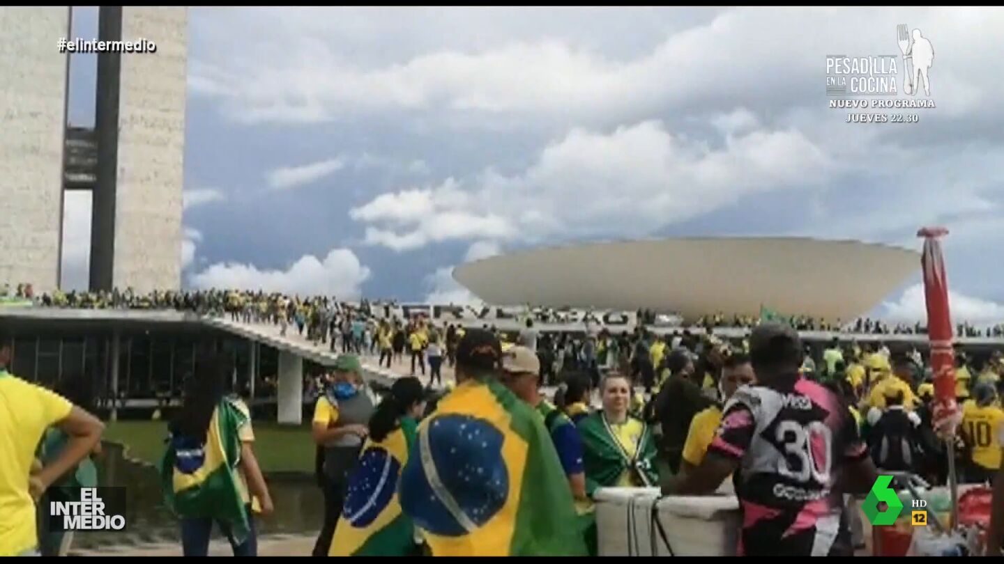 En este montaje de El Intermedio se puede ver cómo algunos seguidores de Jair Bolsonaro se colaron también en la Cabalgata de Reyes Magos con un único objetivo: dar un mensaje que te sorprenderá. Escúchalo en este vídeo.