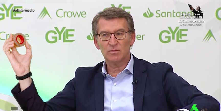 Vídeo manipulado - Feijóo destaca el valor de una "herramienta global" como la cinta adhesiva