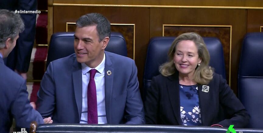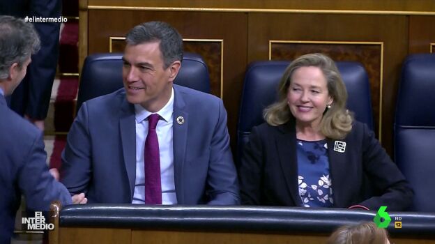 En este montaje de El Intermedio, un diputado del PSOE sube las escaleras del Congreso y pasa por delante de Pedro Sánchez, al que saluda con un "hola, Pepito". Puedes ver el vídeo manipulado debajo de estas líneas.