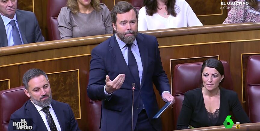 En este montaje de El Intermedio, Iván Espinosa de los Monteros pide repetidamente a Nadia Calviño que le mire, así que la ministra de Asuntos Económicos le dedica una mirada... digna de 'La naranja mecánica'.