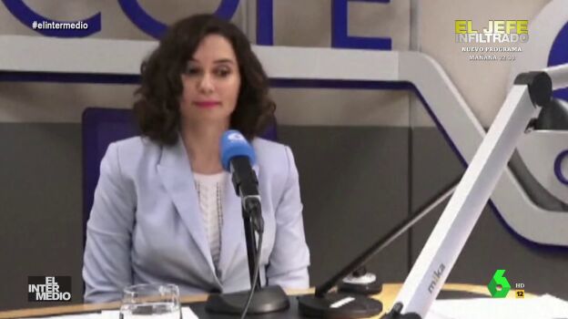 En este montaje de El Intermedio, Isabel Díaz Ayuso se encuentra en la radio para realizar una entrevista con Carlos Herrera cuando, de repente, al periodista no le paran de llegar mensajes al móvil. Así reacciona la presidenta de Madrid.